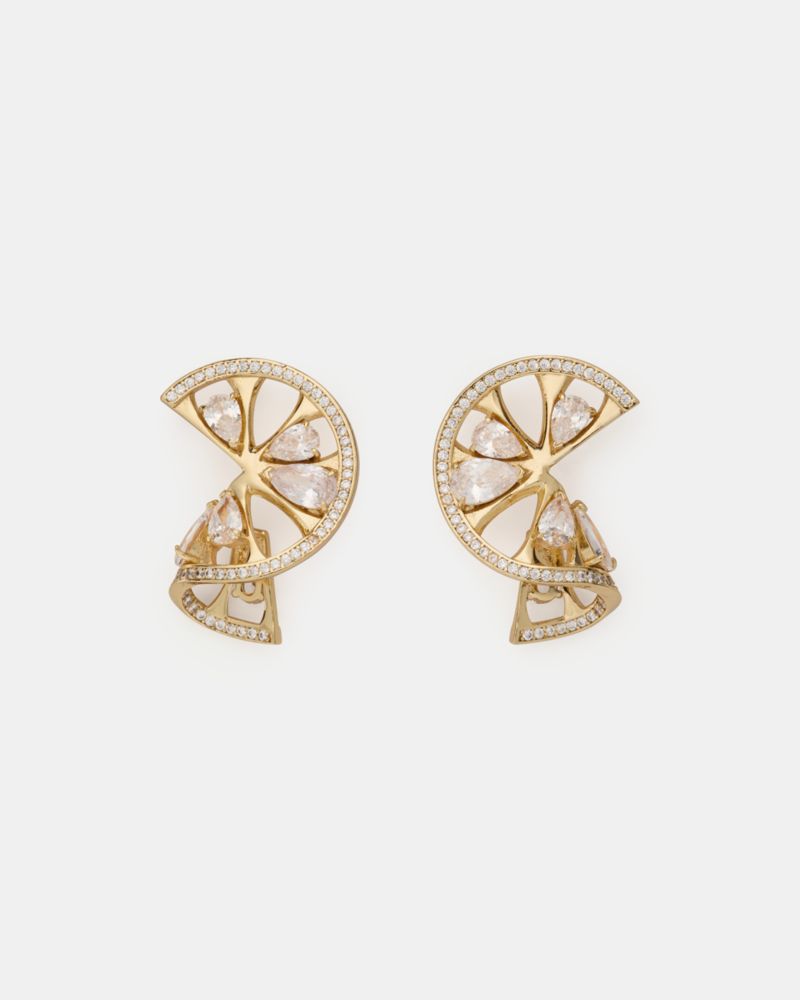 Adorned with crystals, these statement earrings give your look an unexpected—and very chic—twist.