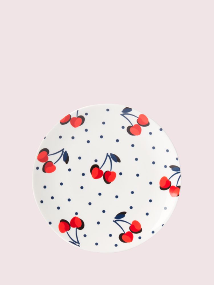 we made this accent plate from dishwasher- and microwave-safe porcelain--which means easy preps and clean ups. plus, the playful cherry dot print is sure to attract oohs and ahhs when your guests finish their meals.