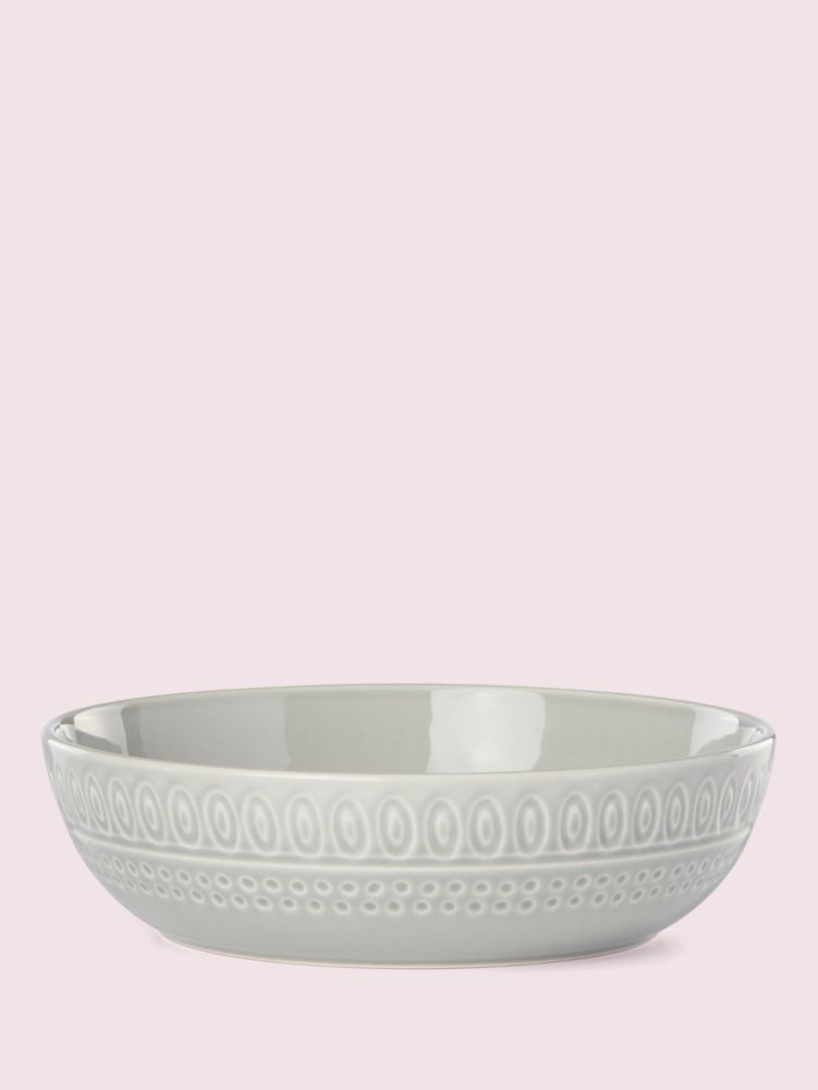 this dinner bowl is from our willow drive collection. it's made from glazed stoneware and has pretty, eyelet-like detail. it will help you set the scene for any meal--whether it's a homemade multi-course masterpiece or takeout.