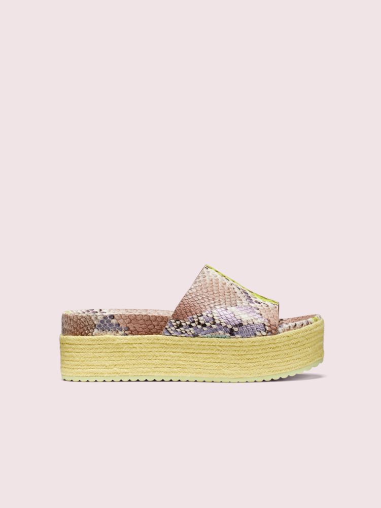 our zia sandals are slides with a boost. paired with a colorful snake-embossed leather upper, they’ve got the kind of jute platform heel that promises to put a little spring (and height) in your step.