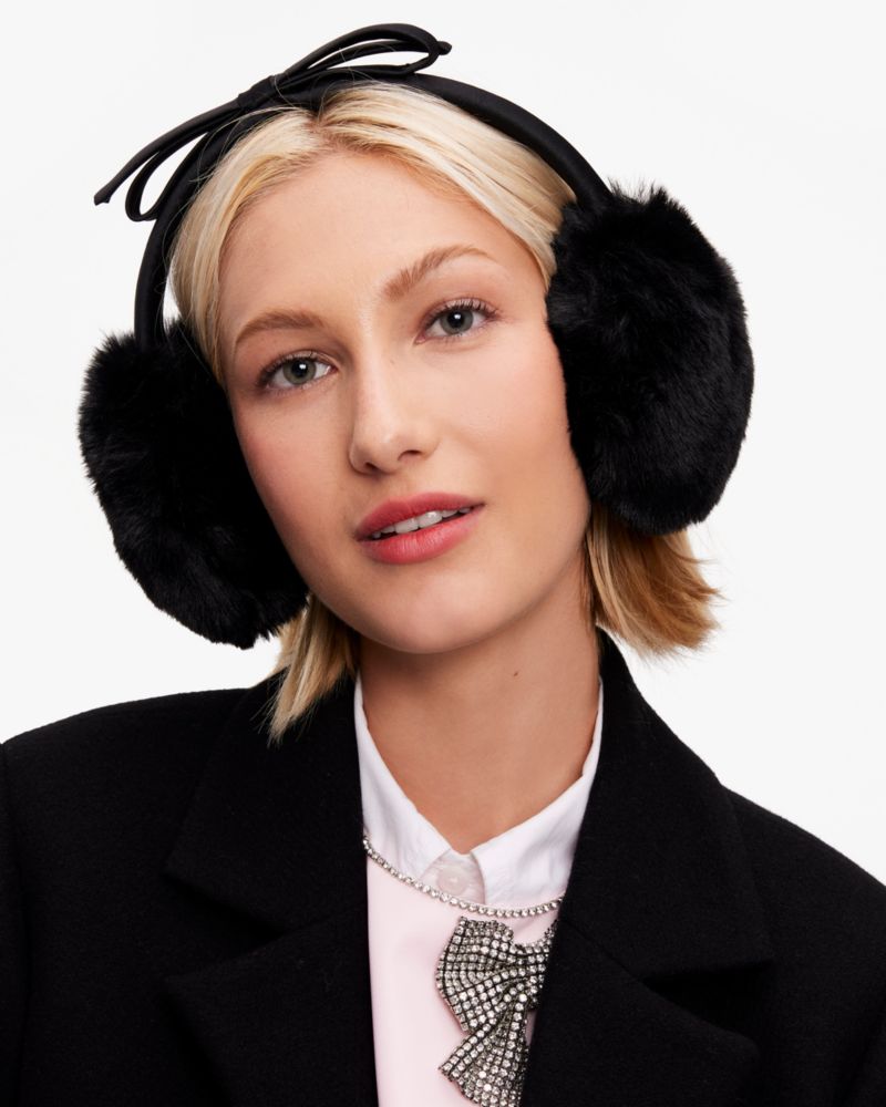 Kate Spade,Shoelace Bow Earmuffs,Polyester,Faux Fur,Ear Muffs,Fur Embellishment,Bow,Casual,Black