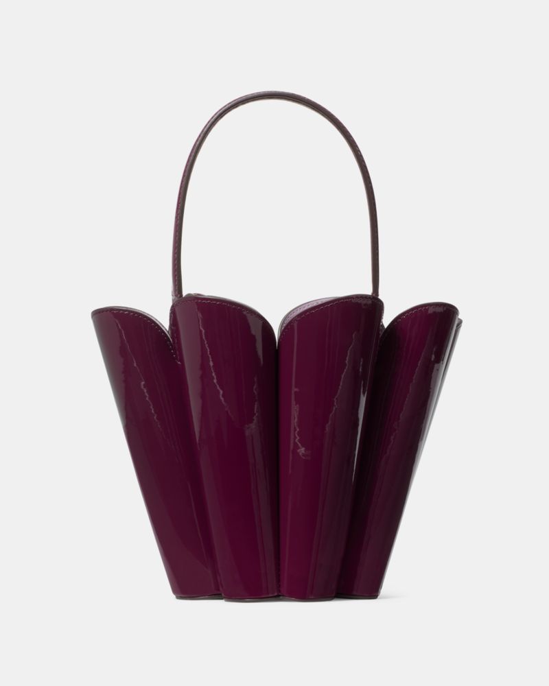 Kate Spade,The Patent Spade Flower Bucket Bag,Leather,Bucket,Adjustable,Silver Metal,Day Party,Purple