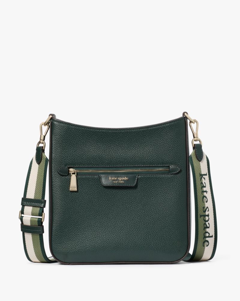 Kate Spade,Hudson Pebbled Leather Large Messenger Crossbody,Emerald