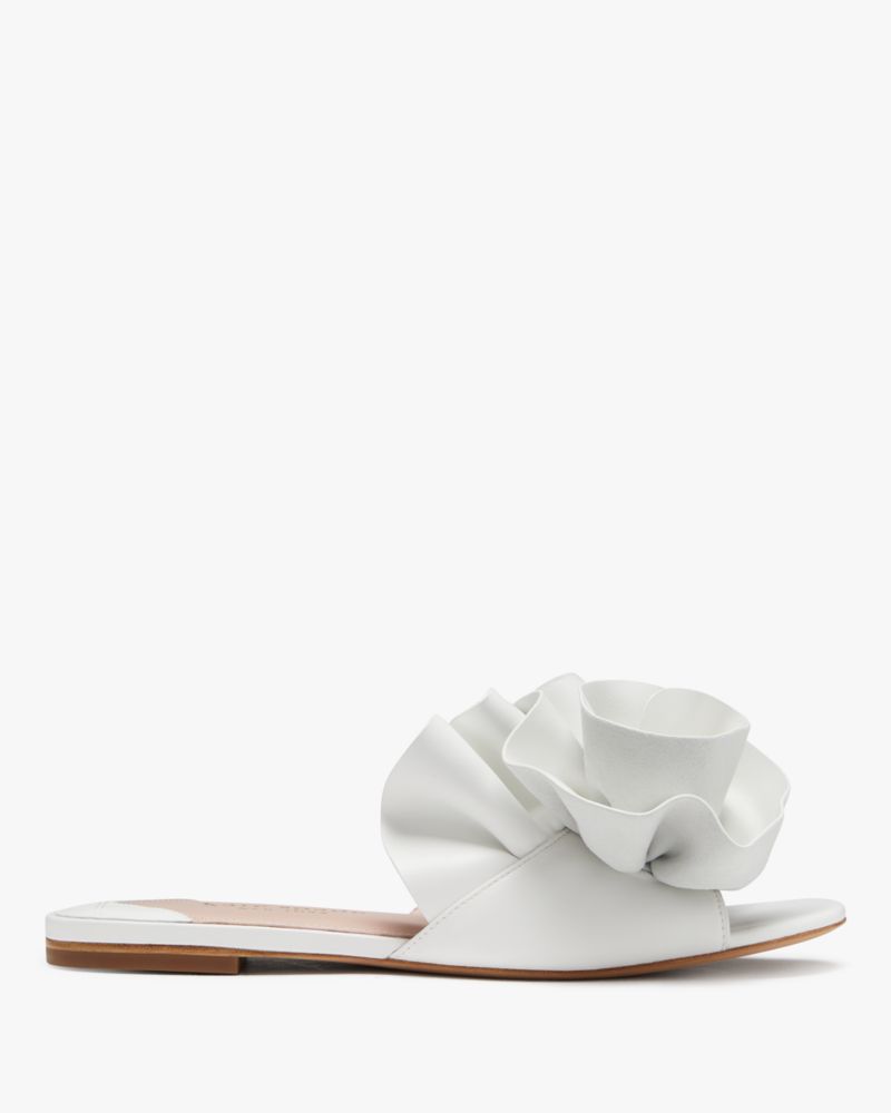 Kate Spade,Flourish Slide Sandals,Lining Leather,Nappa Leather,Slides,3D Embellishment,Day Party,White