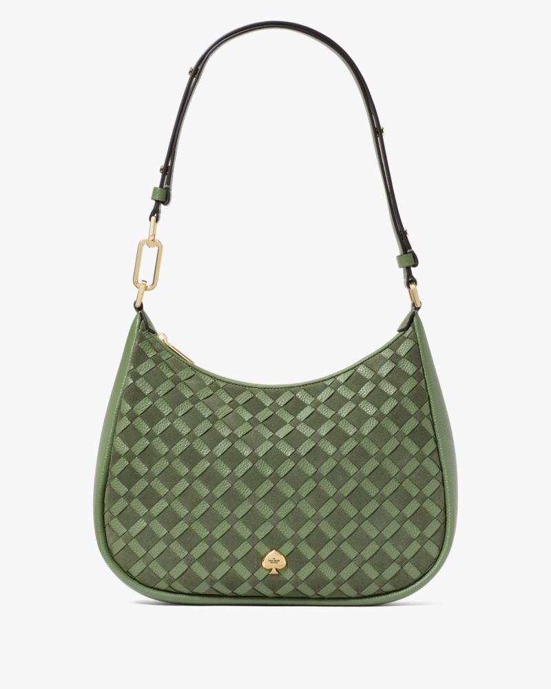 Kate Spade,Kayla Woven Leather Large Shoulder Bag,Leather,Shoulder Bag,Woven,Lined,Adjustable,Gold Plated,Gold Metal,Day P...,Olive