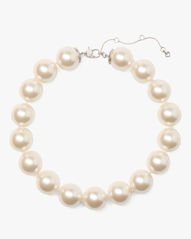Kate Spade,Pearls Please Collar,Single Strand,Choker,Pearl,Acrylic,Cubic Zirconia,Pearl,Day Party,Cream