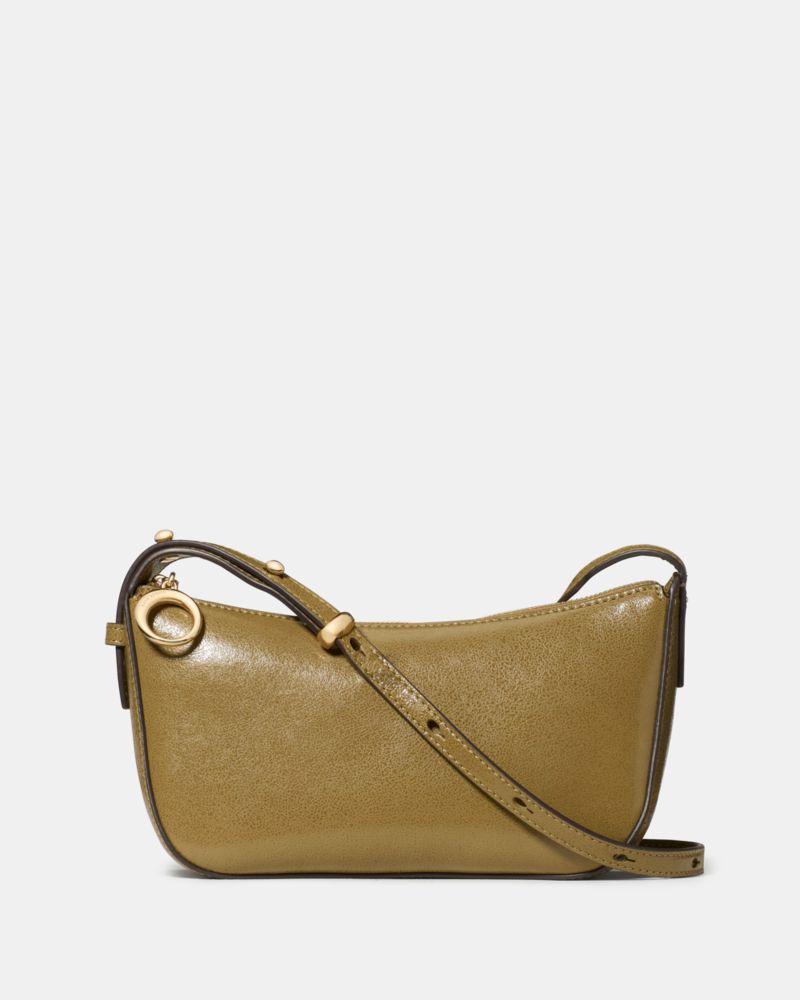 Kate Spade,Halo Glazed Crossbody,Leather,Twill,Lining Twill,Crossbody,Metal,Embellished,Compact,Adjustable,Lined,Silver Me...,Olive