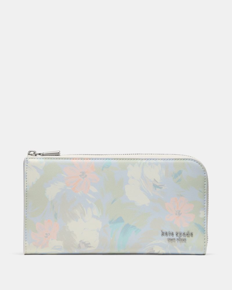 Kate Spade,Hidden Garden Mini Zip Card Case,Card Case,Graphic,Silver Metal,Casual,Multi Color